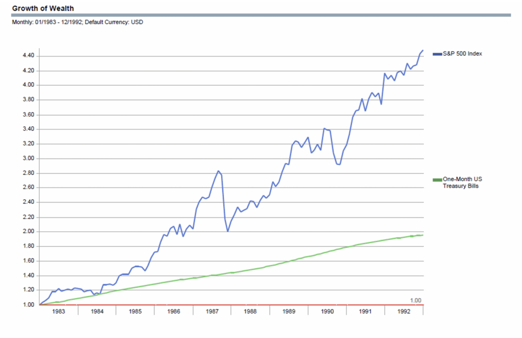 Bild 4: S&P 500 Index och US Treasury bills 1983-1992, i USD
